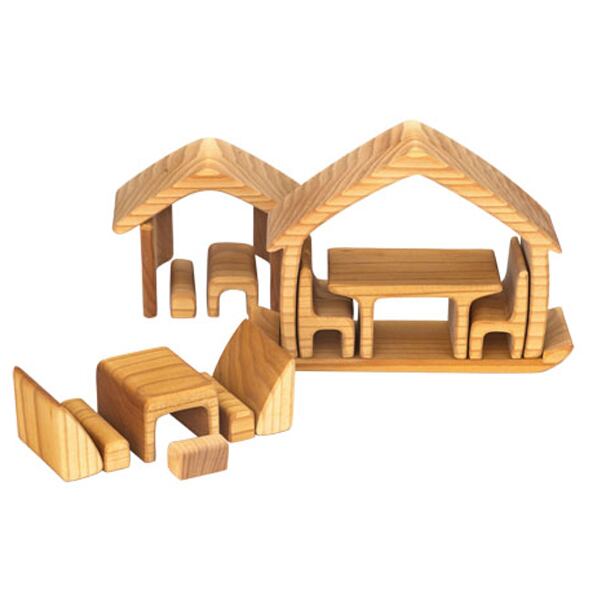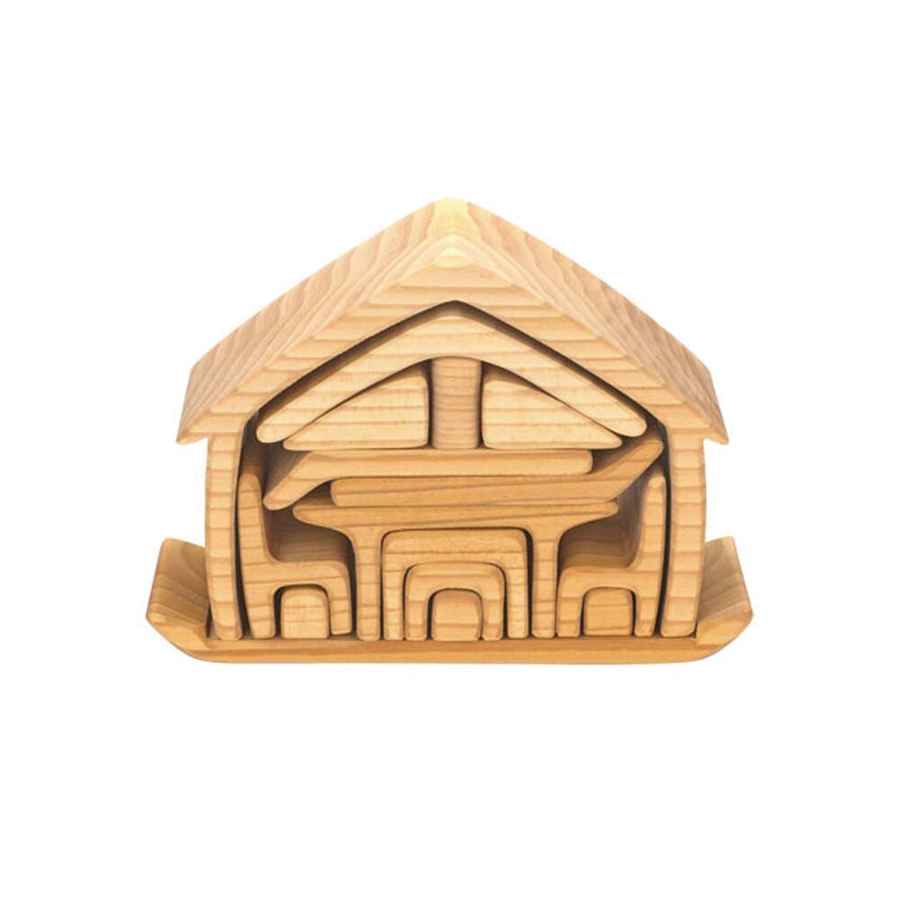 セイヨウシナノキの木材を丁寧にくりぬいた、はめこ式のおうちの積み木。