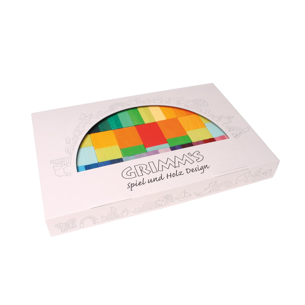 グリムス社のおもちゃは見た人がはっとするほど美しい色彩が特徴です。特に組み立てて完成させる遊びにおいては、カラフルな色彩で遊びの幅が広がっていきます。