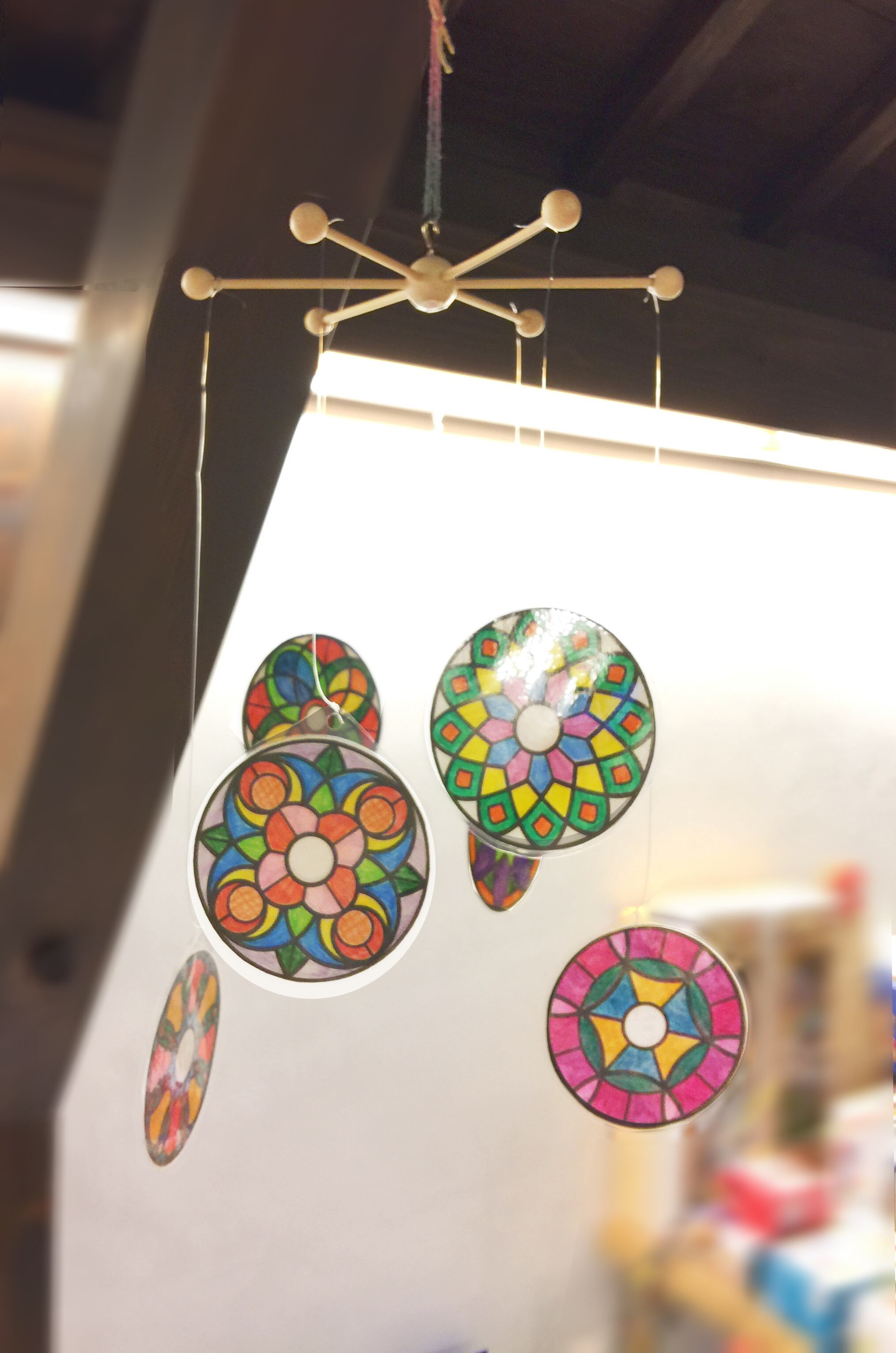 塗り終わったものをラミネート加工して、モビールのようにしても可愛いです。