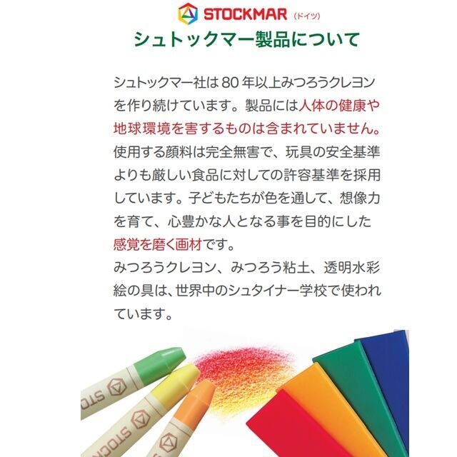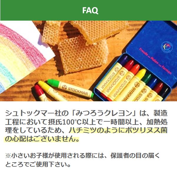 シュトックマー社の「みつろうクレヨン」は、製造工程において摂氏100℃以上で一時間以上、加熱処理をしているため