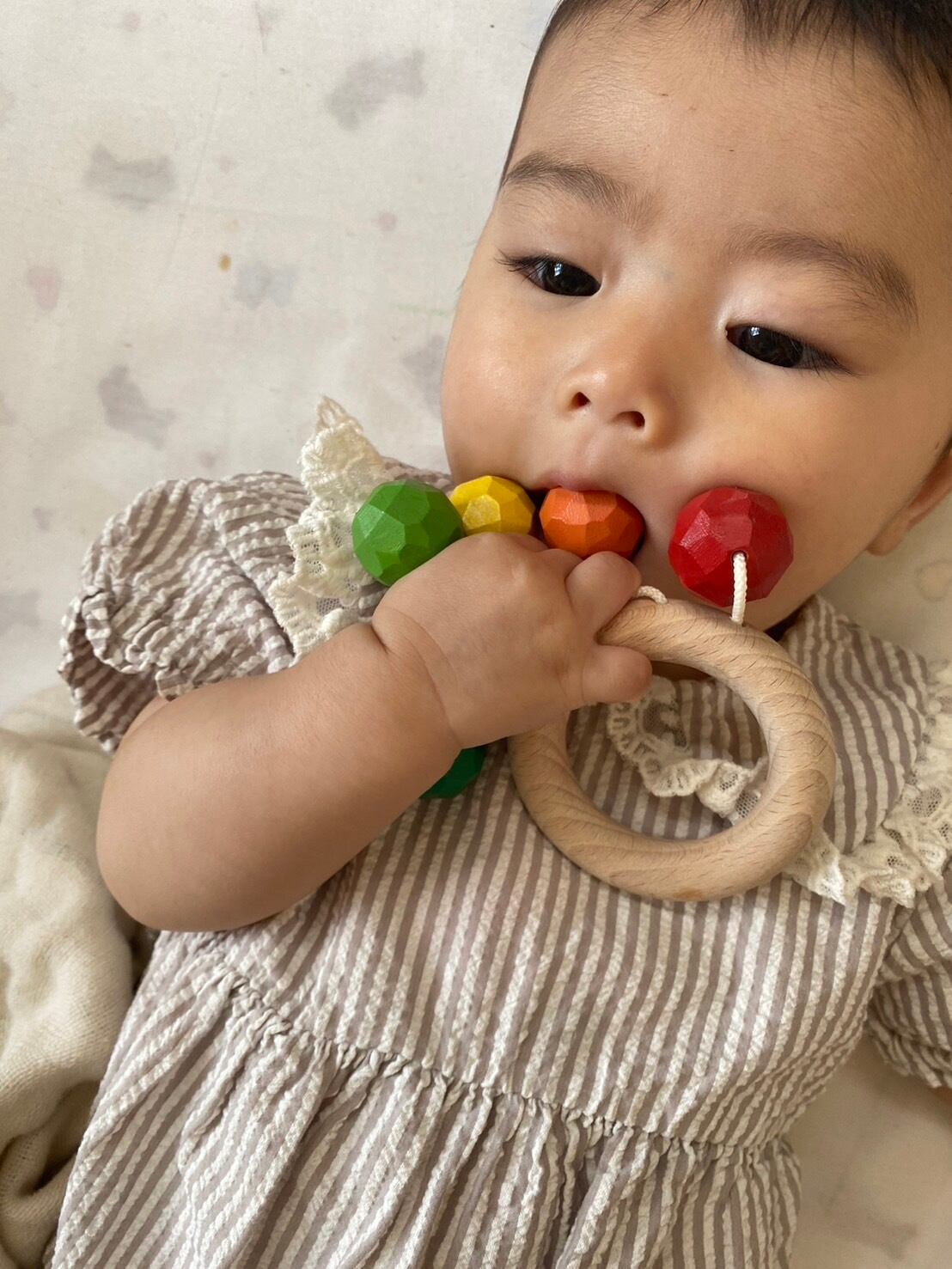 赤ちゃんが舐めても安全な自然素材の塗料を使用しておりますので、歯がためとしてもお使いいただけます。